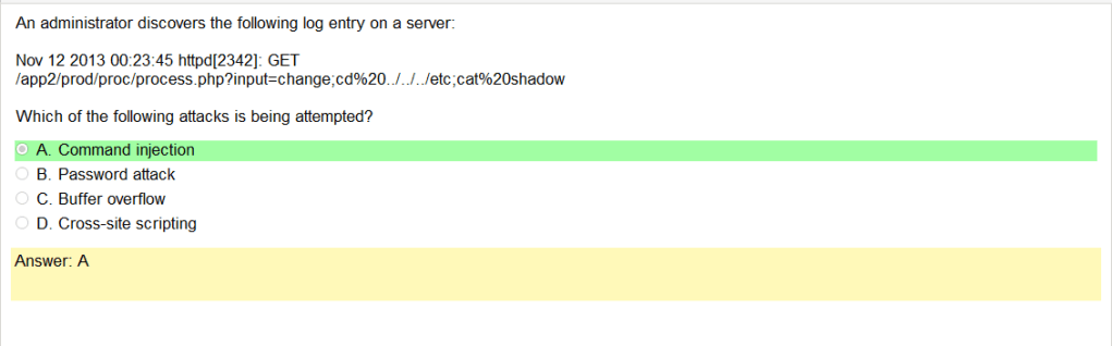So a get process command sent to a Linux box is for sure an example of command injection.