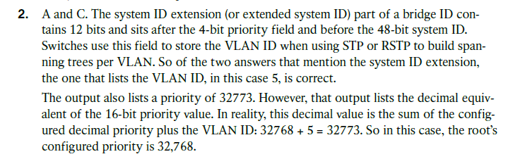 You know, that sounds really complicated but there was the issue of ‘it doesn’t say pick two’ but the two given answers seem logical. The naming convention is a little different. So, System ID extension value, means vlan? ok.