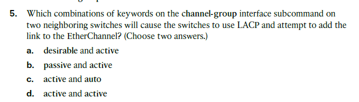 The thing is, when you keep reading these things, you start to gain more of an understanding. Like you use a VLAN assignment, which is sort of the same as trunking, on 2 ports. You dont have to do that but it is an option. My guess without looking below is D and it looks like im right.