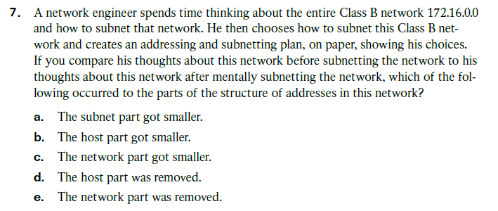LOL i still have no clue. I mean, obviously if hes subnetting it the number of hosts on the total ‘subnet’ thats now two subnets is reduced. I think thats what hes saying haha no im not posting it.
