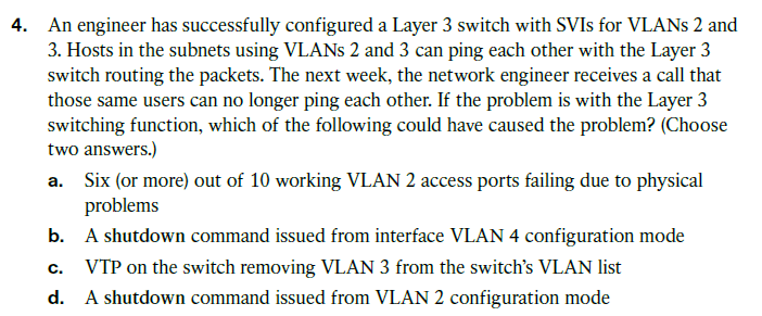 Mannnnn, seems like there should be several answers here. I would assume a router and a mask. There’s no info on the subnet specifics, right? Or are those in order. It would appear so but why only VLAN 2? Is this a trick question?