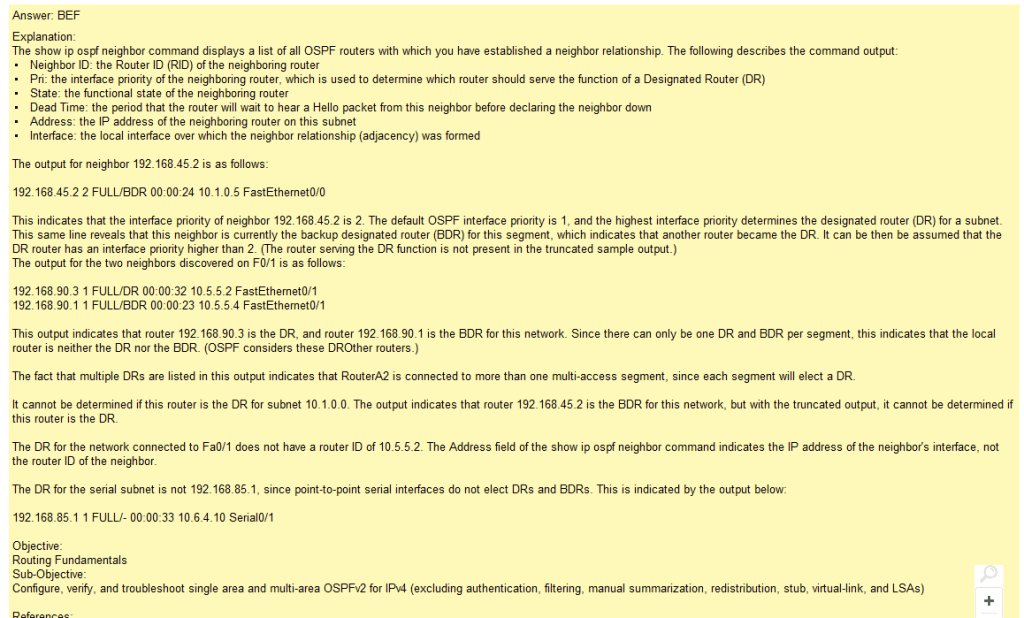 This is probably a google as the answer output is slightly confusing to me. actually this is more than slightly confusing. This is hella confusing. So far no luck on finding more info on YouTube, so I’m going to move on again and maybe come back to this but I did find this helpful. The Cisco docs on this are Cisco docs and this is a situation that appears to require some amount of experience with the command in a live environment.