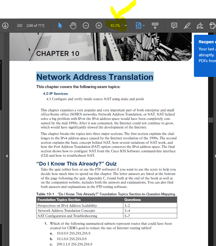 Realizing that paragraphs exist and that I use the word anyway insted of forming a new paragraph for some reason. Quick note about Adobe and wondering if anyone else finds this annoying as hell and its not local to one install, when you click a linked chapter or section in the book marks section it changes the view, every single time and this effects screen shots. I may be the only person that finds this annoying and im sure there is away to set the default zoom but its still annoying. So before we start into chapter 10, lets figure out if there is a way to set that.