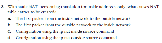 This is kind of tricky because you want to think its a generic router comment which it sort of is but static routes are always configured right? So you would think it would be inside that the translation would be done? C?