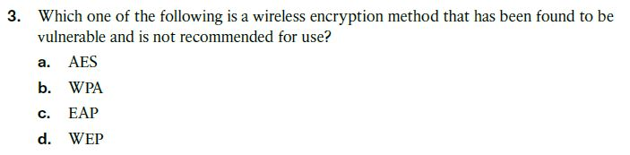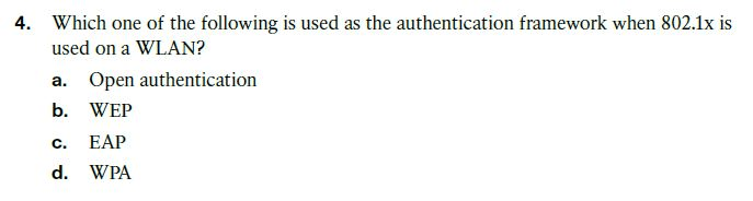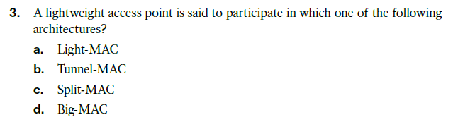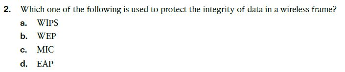 What the hell is MIC? For sure A and C but it has to be D. I mean, its not secure if its not encrypted. but it does say “connection” and one would assume authentication is part of that. But we could be pulling the old wool eyes here. Anyway, google doesnt really know know what MIC is lol. I guess I’ll find out later