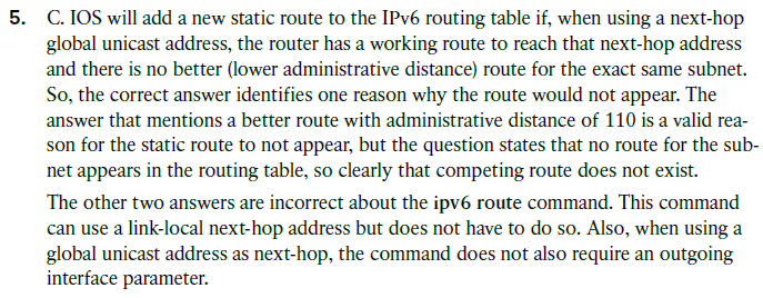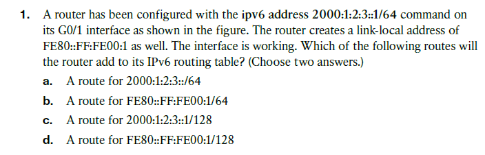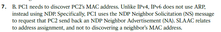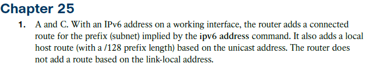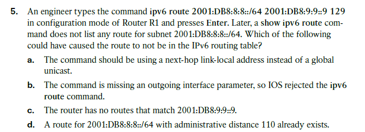 Seems like we saw a similar question on the last chapter with the link-local information. Anyway, I’m not really sure here but maybe B?