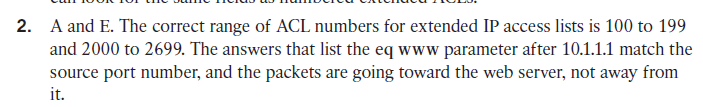 These really could be random numbers labeled access list but this one sources ports in the answer yet there are no ports listed in the answers. the eq is a thing but this isn’t given proper treatment.