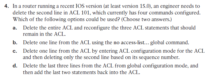 Anyway, I looked this up and while it doesn’t implicitly state its the same thing as a regular ACL, that does appear to be mostly the case. Given the options E and F seem to be solid candidates.